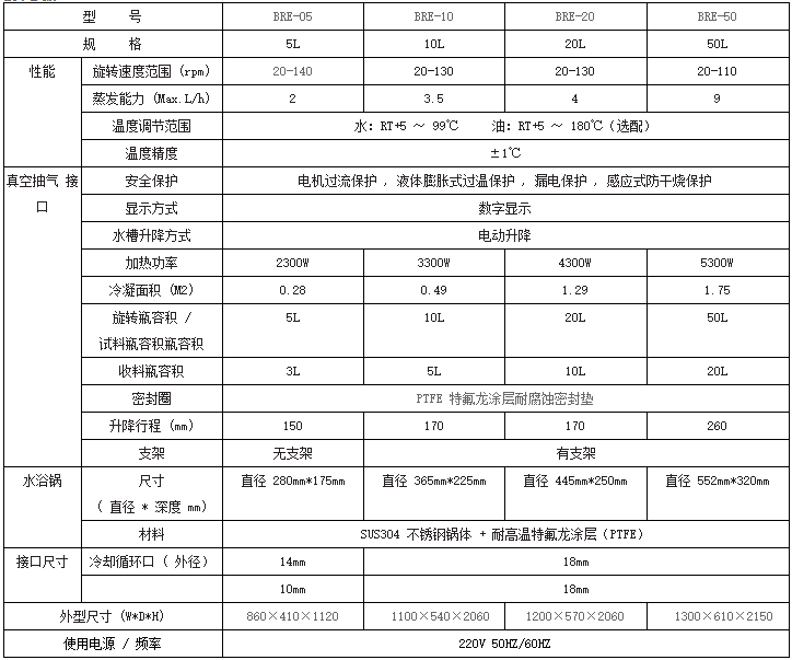 规 格:50L 旋转速度范围 (rpm):20-110 蒸发能力 (Max.L/h):9 温度调节范围水:RT+5 ~ 99℃ 油:RT+5 ~ 180℃(选配)